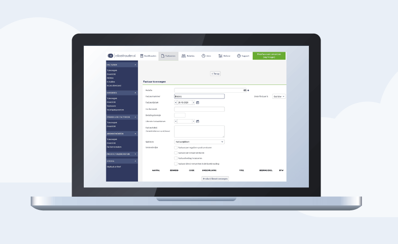 Starten met factoring is eenvoudiger met e‑Boekhouden.nl. Maak en verzend facturen gemakkelijk en snel in ons boekhoudprogramma.