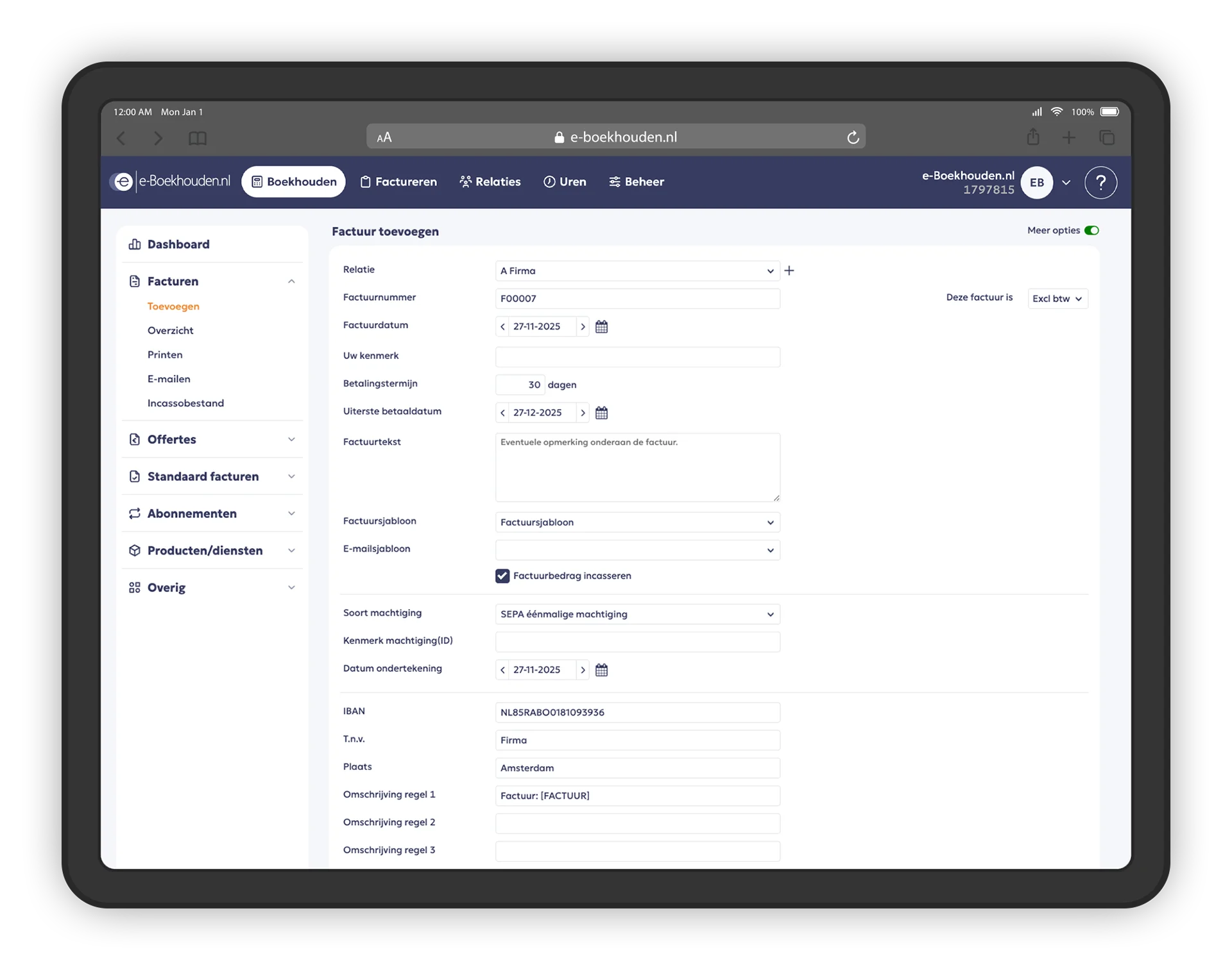 Hoe stel ik automatische incasso in binnen e‑Boekhouden.nl? |